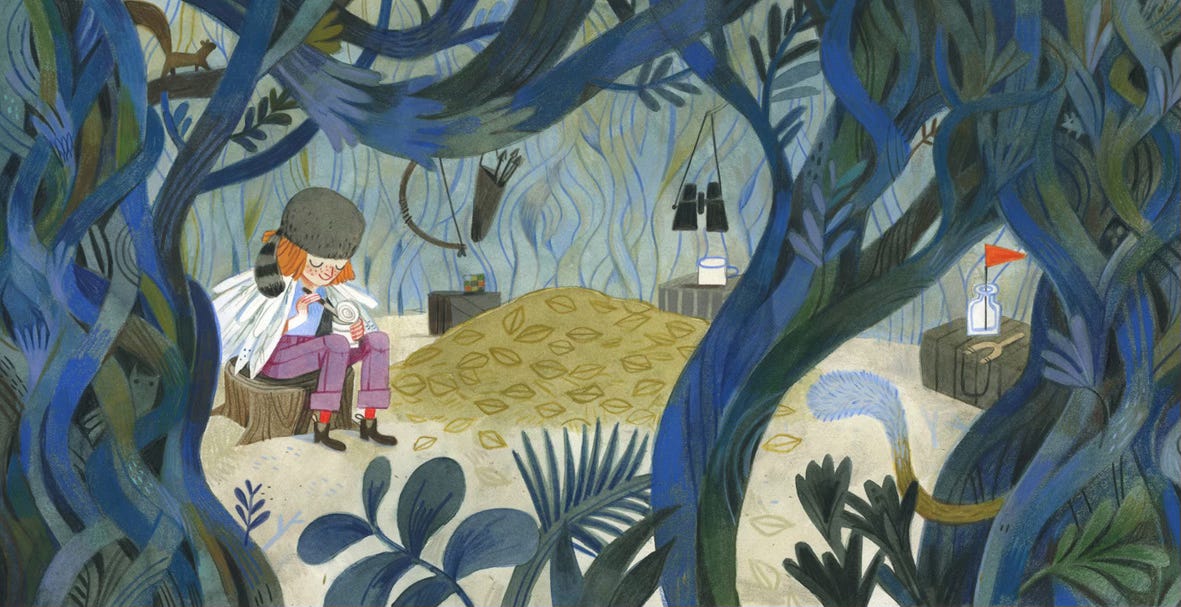 Both art and text deftly illustrate a common, contradictory urge to escape the company of humans while also retaining its safety. The companions live—undetected—in a vine-enclosed space large enough for their feathery capes, leafy beds, and small fire for roasting pigeons on. When Hannah decides to return to those who miss her, the final pages leave readers uncertain about what—if anything—has actually happened.